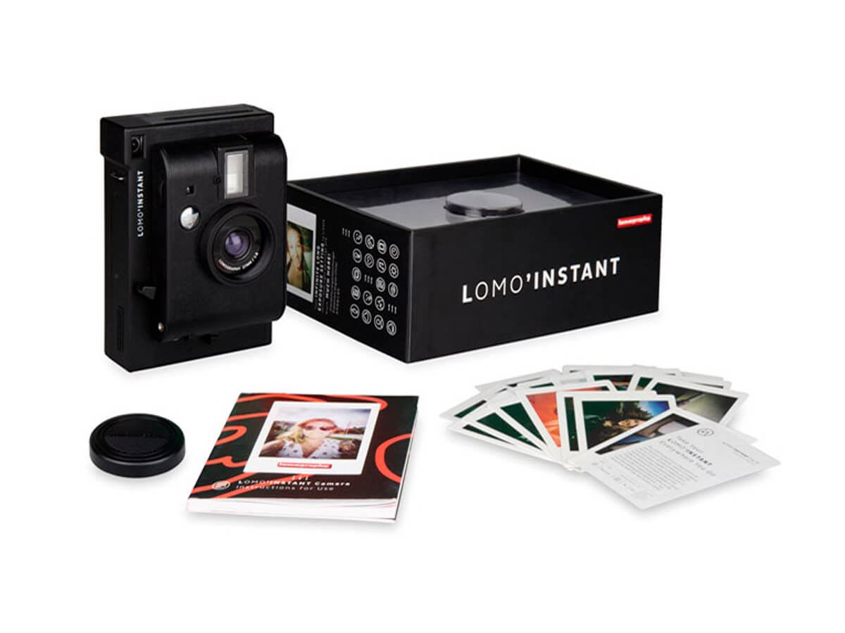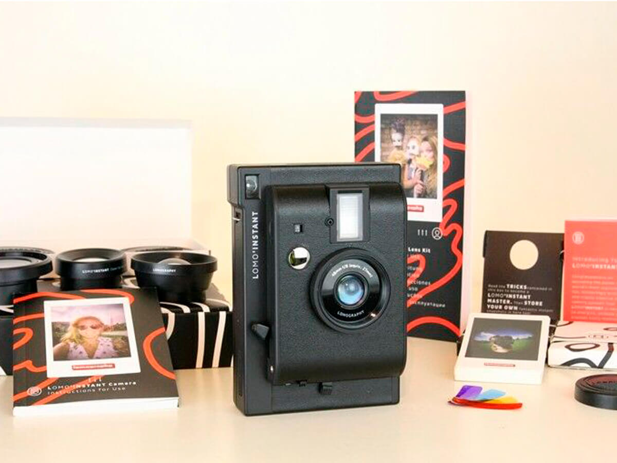 Incluye: la cámara Instantánea en color negro, tres lentes y sus tapas, filtros de gel de color, tarjeta técnica de disparo y manual de instrucciones.