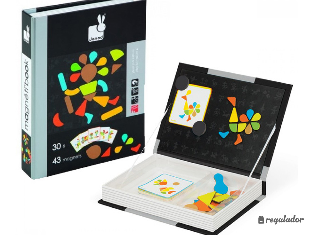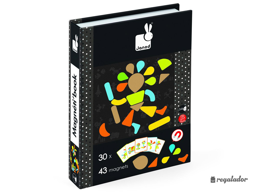 Incluye: 43 imanes de diferentes formas, 30 cartas y caja con compartimentos