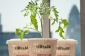 Encontrarás 3 macetas en cada caja: una de tomate, otra de pimientos y la última de albahaca