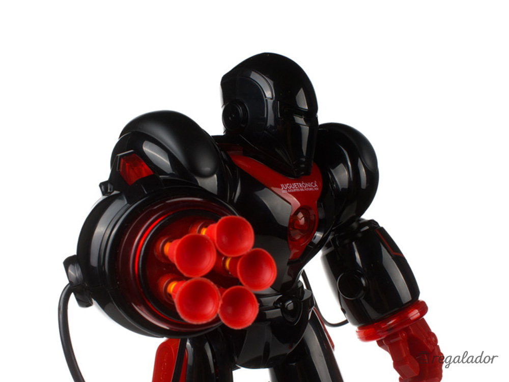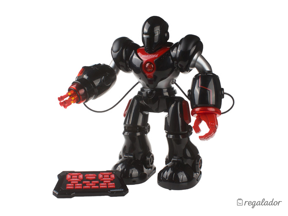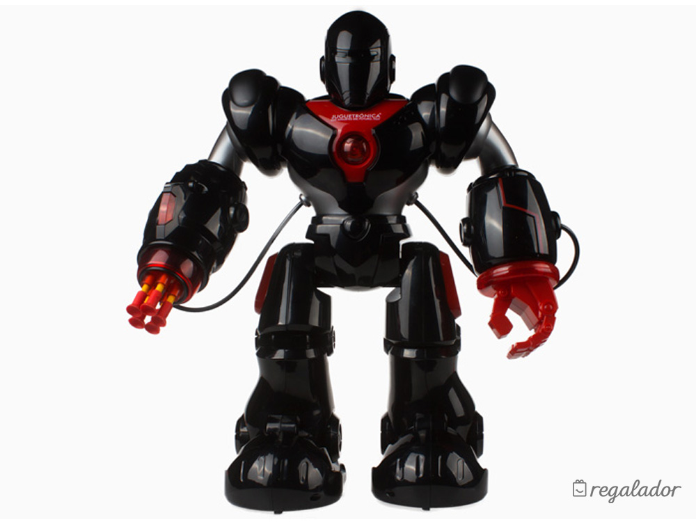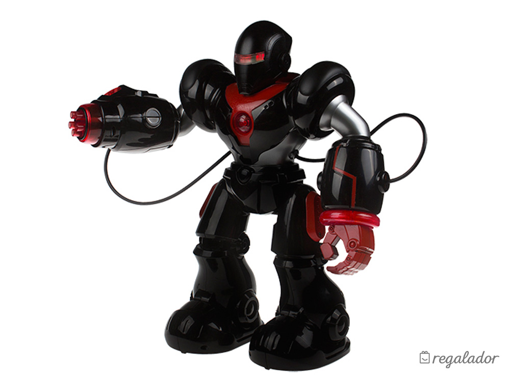 Los peques alucinarán cuando vean que su Robotron les sigue los pasos, habla idiomas o les enseña cosas sobre robótica. Es un auténtico guerrero galáctico: una de sus manos se ha transformado en un cañón para disparar misiles de ventosa. Si lo colocas en una posición estratégica y dispara sus dardos. ¡Te protegerá de cualquier peligro! Además, cuenta con una variedad de posiciones de lucha así como un sistema LED de expresión facial que lo convierten en un guerrero galáctico temible.Es bueno que sepas que...