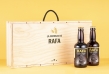 6 cervezas artesanales pilsen Dolina presentadas en una caja de madera personalizada