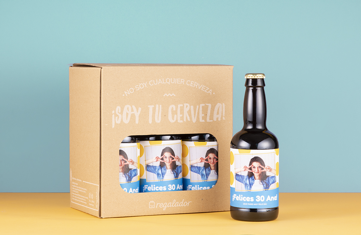 Pack de 6 cervezas pilsen personalizadas - Diseño Topos con caja de madera
