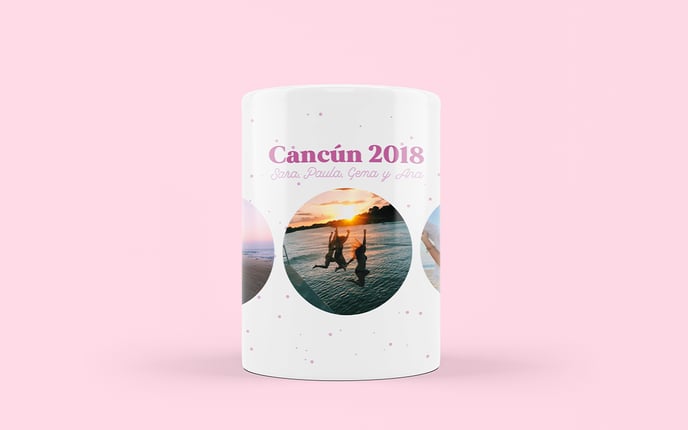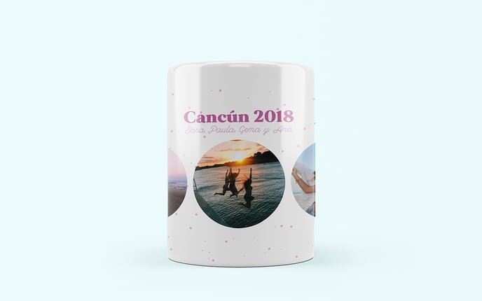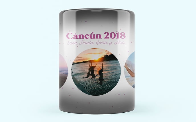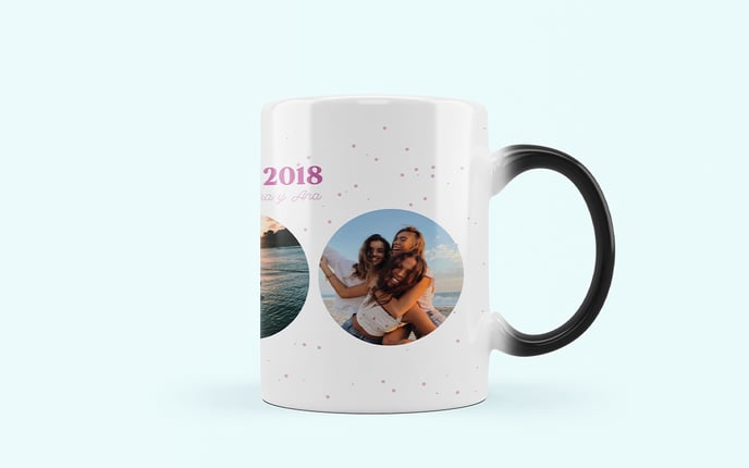 Muchas veces es difícil encontrar una taza personalizada elegante, bonita y que realmente exprese lo que queremos que le llegue a esa persona tan especial. Esta va decorada con lunares, un texto personalizado con la tipografía que tú quieras y vuestras mejores fotografías juntos, en un diseño rosa de círculos o azul de cuadrados. Puedes elegir vuestros momentos más divertidos juntos o esas fotazas suyas que le recuerden que es genial. Además tenemos dos acabados: la blanca personalizada de siempre o una taza mágica que es completamente negra hasta que introduces un líquido caliente, momento en que se revela el verdadero diseño de tu regalo.