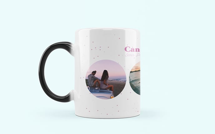 Te costará decidirte entre nuestros dos acabados: tu diseño en la taza blanca de cerámica sublimada (¡la de siempre!) o en una taza completamente negra que revelará el diseño que has creado en cerámica blanca al introducirle cualquier bebida caliente